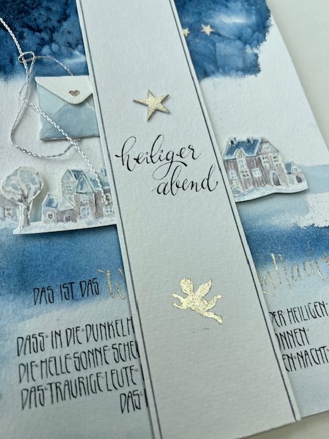 „Ein Stern führt durch die Dunkelheit und leuchtet in der Nacht…“. Die Kursinhalte ähneln dem Kurs „Weihnachtskarten im Nostalgielook“